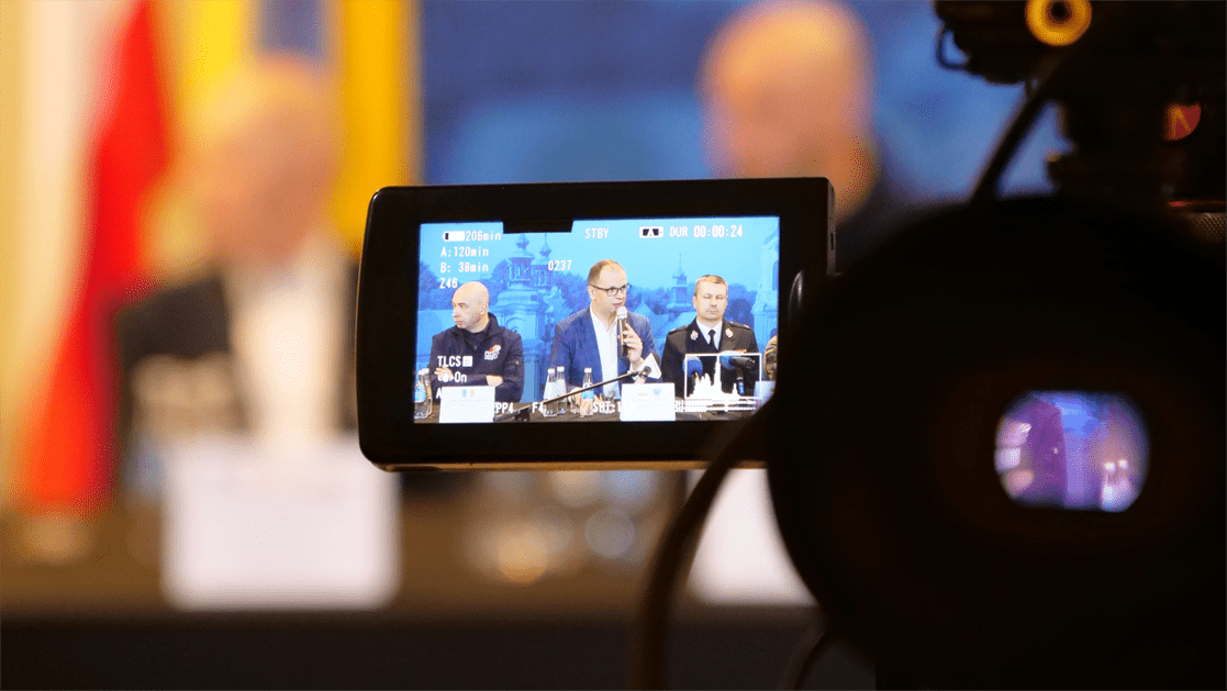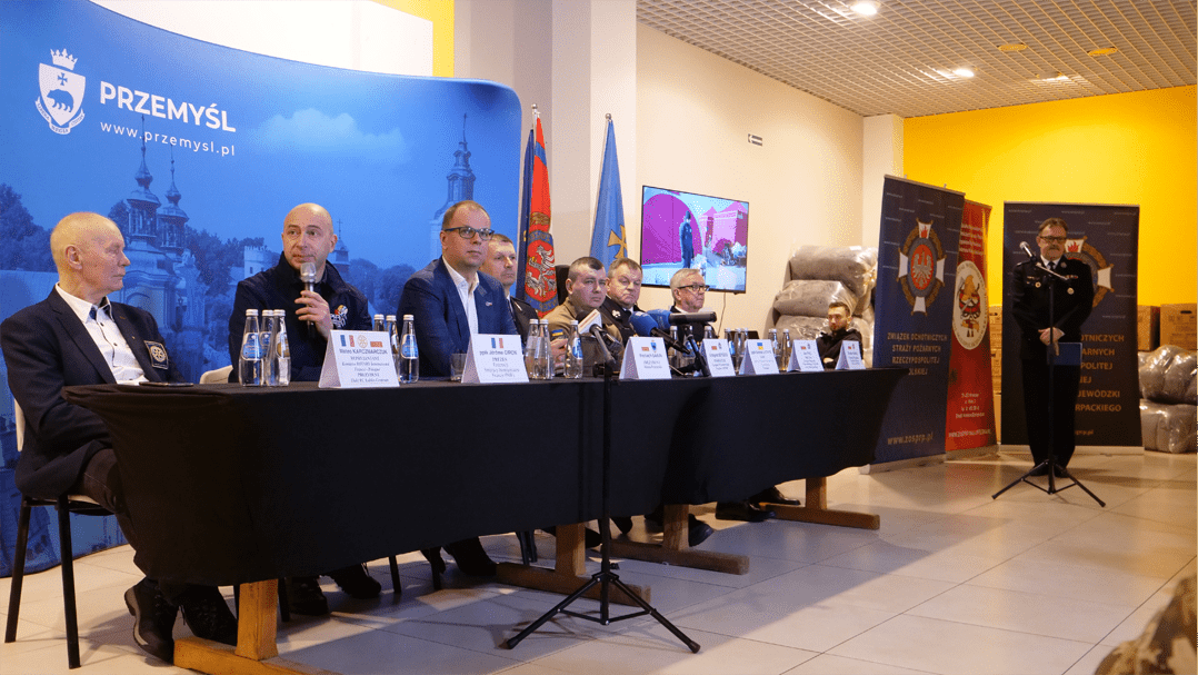 Reportage photo de la conférence de presse en direct du Centre d’Aide Humanitaire de Przemsyl, ainsi que du don officiel